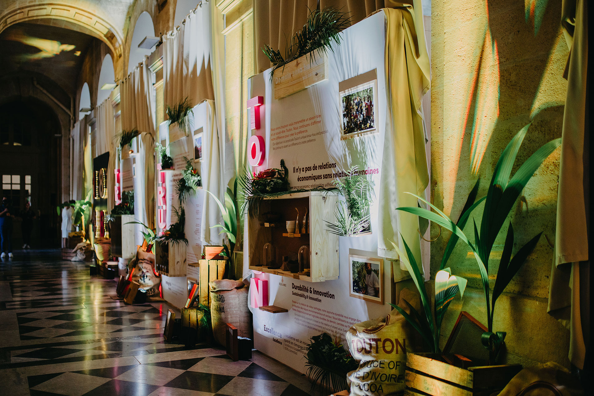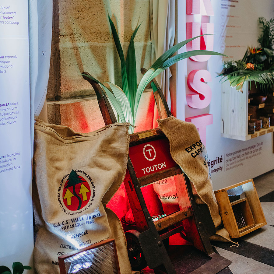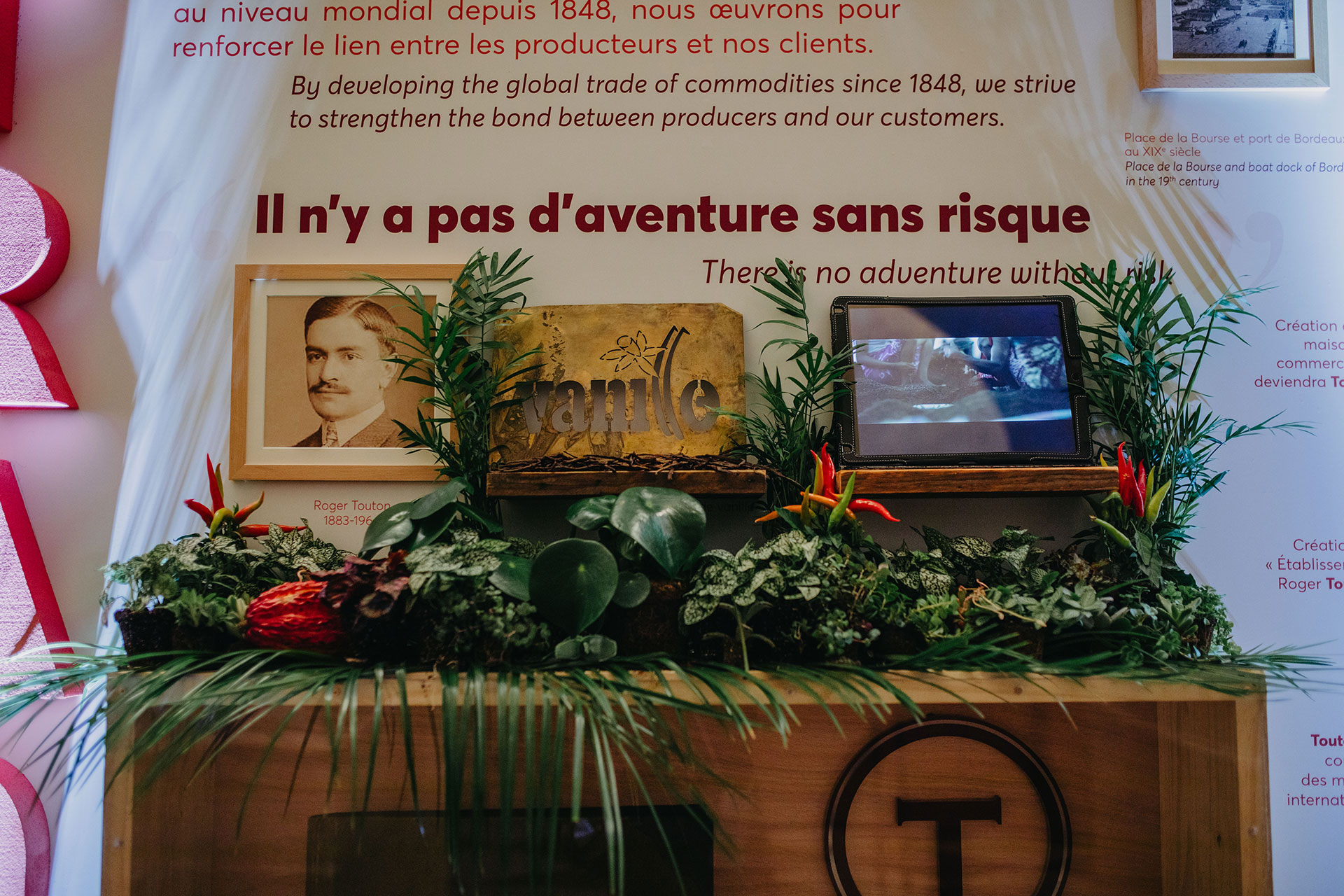 Une fresque interactive de 10 mètres de long retraçait l’histoire du Groupe Touton, intégrant objets historiques, contenus immersifs et une approche multisensorielle faisant appel au visuel, au toucher et à l’odorat, autour de matières emblématiques comme le cacao ou la vanille.