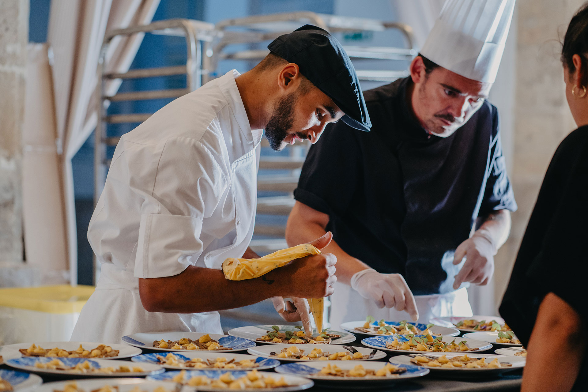 Diner assis pour 400 personnes : un menu haut de gamme inspiré du cacao, de la vanille et du café, travaillé en subtilité et élégance. Organisation millimétrée de ce diner et du service des vins.