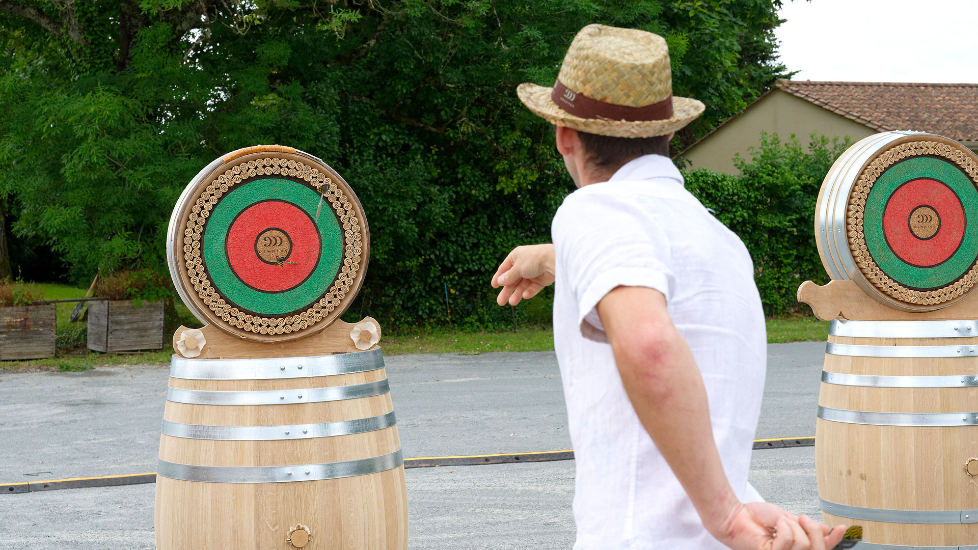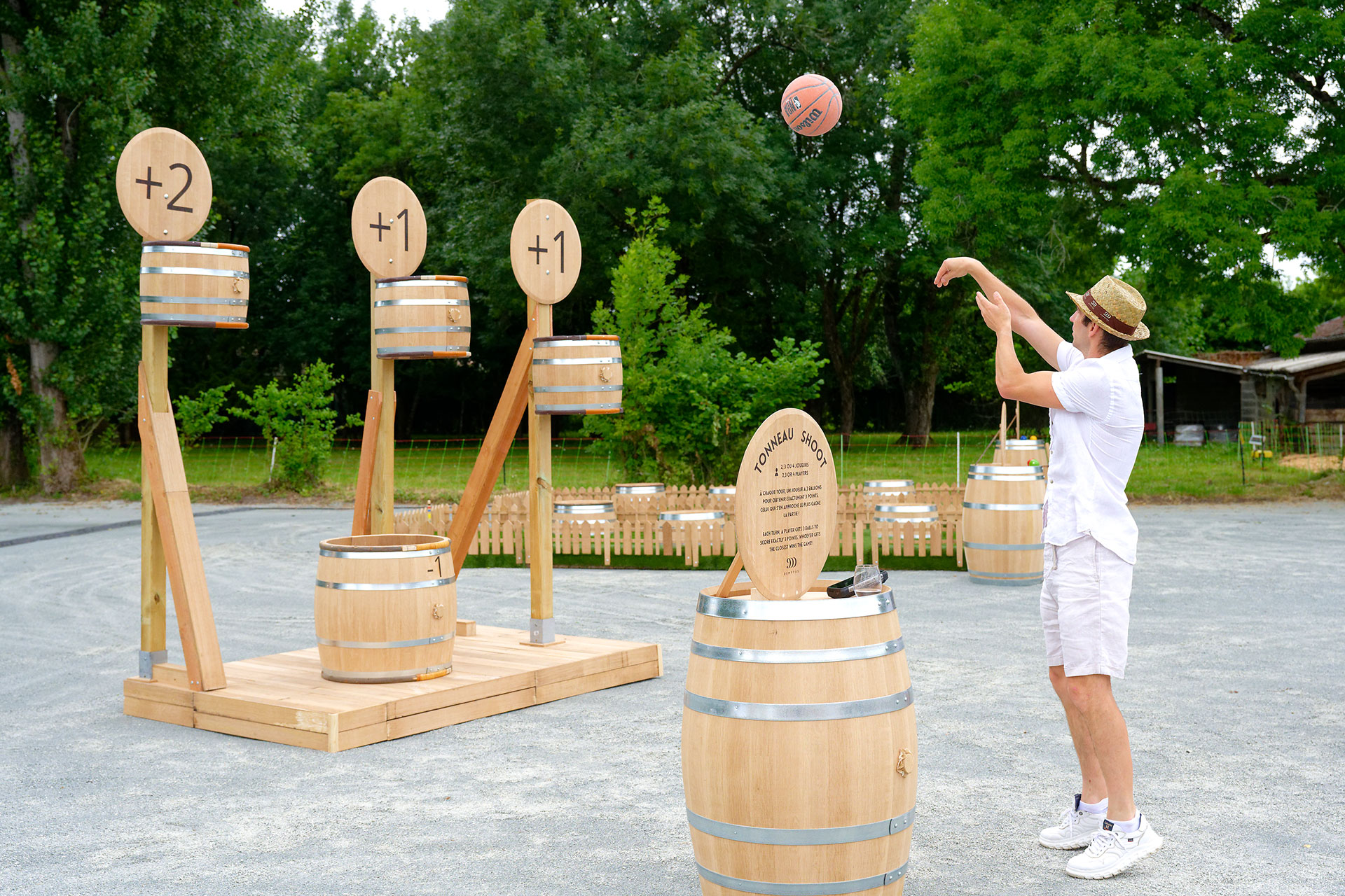 Une création de jeux en barrique pour le lendemain : en co-production avec l’atelier de la tonnellerie, nous avons imaginé et fabriqué des jeux grandeur nature (panier de basket, cricket, fléchettes…) en détournant les barriques. Des créations uniques, qualitatives et ludiques, qui ont prolongé l’expérience Demptos jusque dans les moments les plus conviviaux.