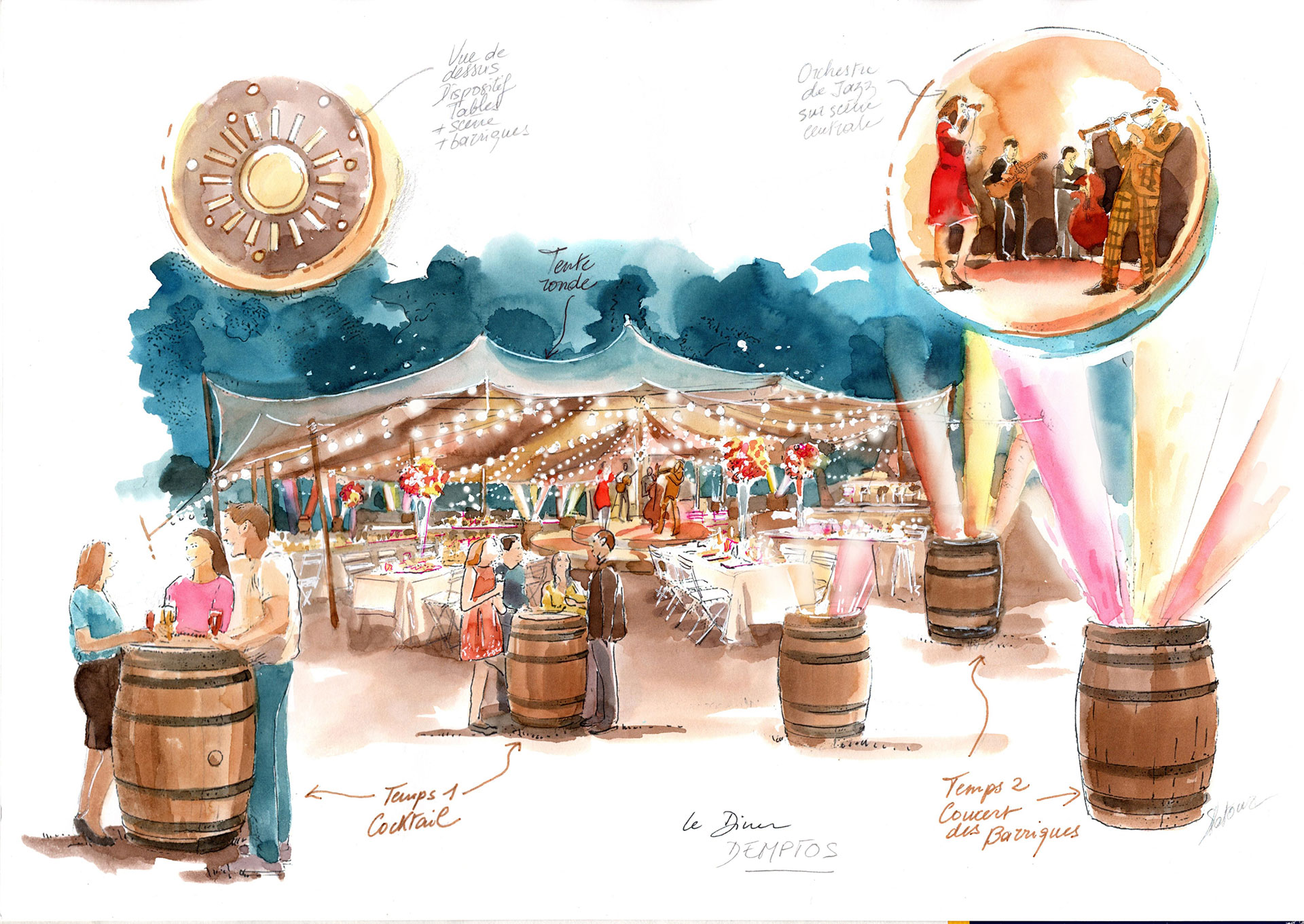 - 500 m² de tente scénographiée