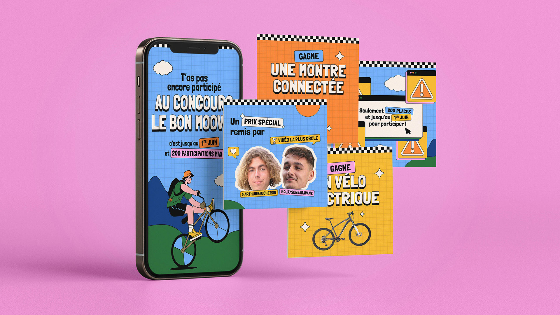 L’univers graphique a été pensé pour s’éloigner des codes institutionnels et adopter un territoire visuel dynamique, inspiré des usages des réseaux sociaux. Couleurs impactantes, typographies modernes et ton positif ont permis de créer une identité forte, déclinée sur l’ensemble des supports digitaux et print, au service d’un message de prévention clair et accessible.